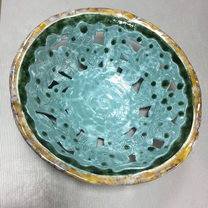 Ваза "Экзотический фрукт" 2019г. диам. 60см, в.46см, фаянс, глазури. -