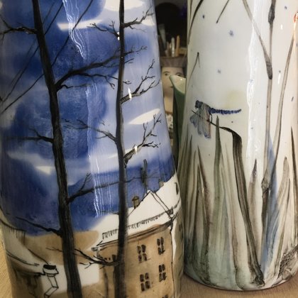 Ваза "Портрет девушки" 2018г, белая глина,глазури -